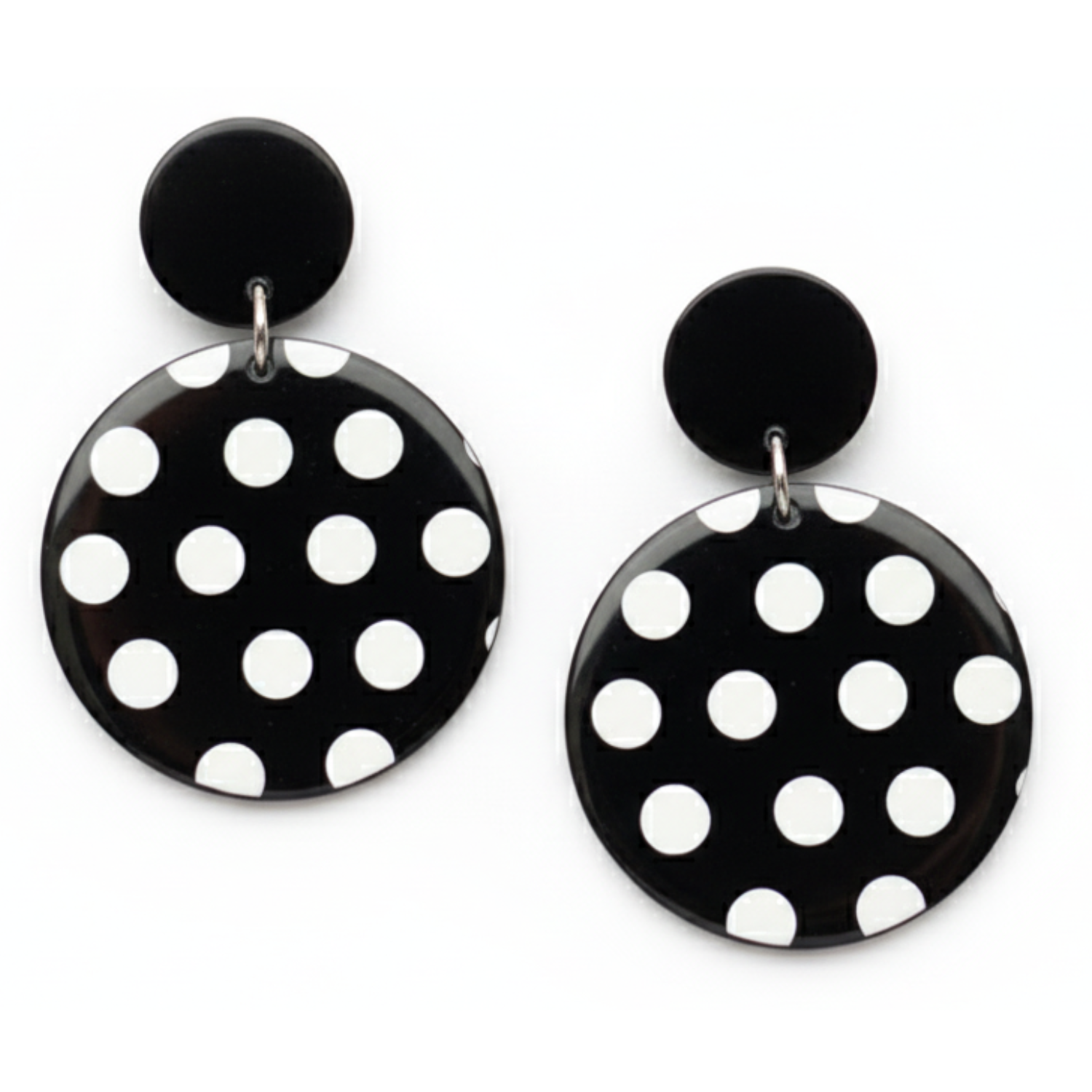 Elegancia atemporal en blanco y negro. ⚫⚪ Nuestros nuevos aros con diseño de polka dots son el accesorio versátil que va con todo. Desde un outfit casual hasta un look de noche. 🌟 Dale un toque sofisticado y trendy a tu estilo. 🤩