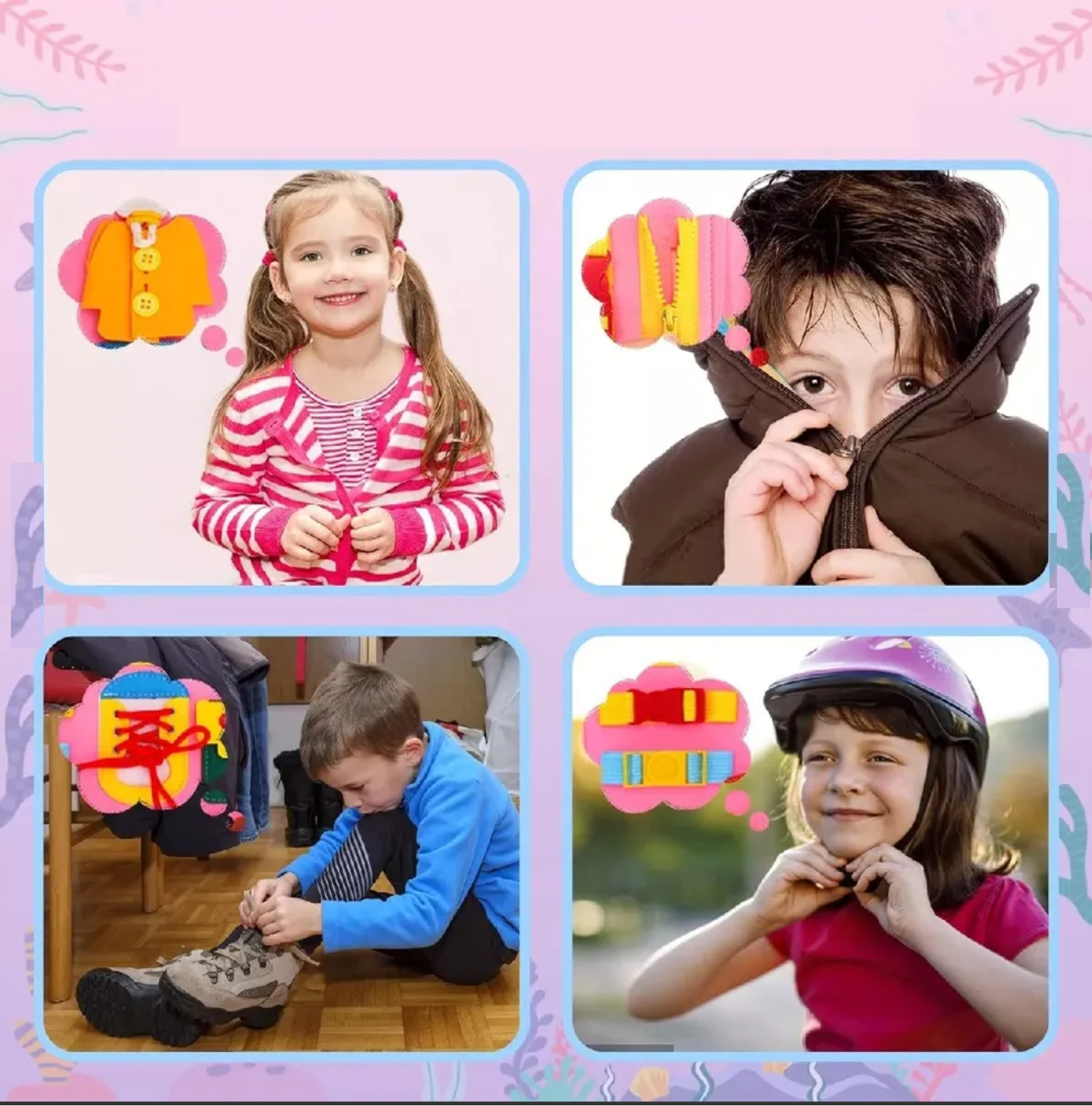 ✅ Habilidades para la Vida: Practicarán abrochar, atar y cerrar, fomentando la independencia y la confianza en sí mismos.